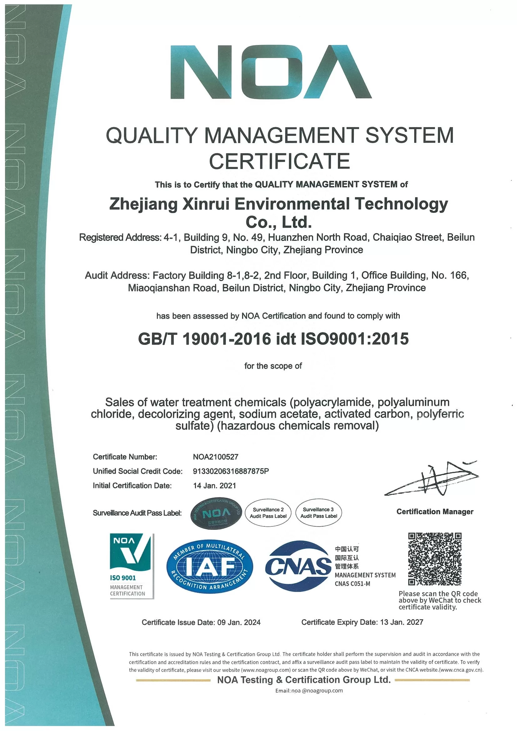 Nexus Aqua is affiliated to Zhejiang Xinrui Environment Protection Group, which was established in 2009 and headquarted in Ningbo China, a high-tech company specializing in water treatment industry, and has decades cooperation in R&D with Zhejiang University. The company's main business scope includes chemicals and equipments commonly used in municipal & industrial wastewater treatment plants. Our chemicals range from microbial carbon sources like sodium acetate, glucose, complex carbon source to PAC, PFS, PFC, PAM, Calcium Hydroxid, Calcium chloride, etc. Also Nexus Aqua designs and supplies equipments for your sewage facilities, and provides technical services for that, our products are widely used in municipal and industrial water treatment plants, mining, oilfield, paper mills, dredging. We exported to over 10 countries and got praises from clients of Malaysia, Japan, Vietnam, Indonisia, South Korea, Pakistan Kazakhstan etc. We can help you upgrade for your wastewater treatment technology, to make it as effective as what we do for top efficiency sewage plants.